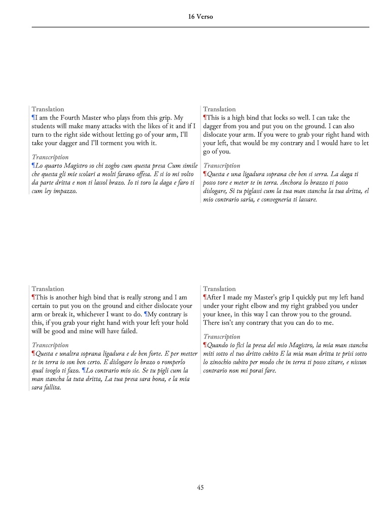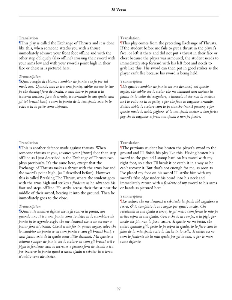 A translation of Fiore dei Liberi's Il Fior di Bataglia manuscript, an illustrated treatise on the late mediaeval art of arms from the first decade of the fifteenth century. Also known as "The Getty" and "Ms. Ludwig XV 13", it is the most detailed of Fiore's works. With its hundreds of techniques, it shows how to fight for your life in armour and out, on horse or on foot, with dagger, sword, spear, poleaxe or unarmed. This book reproduces the original manuscript, along with a transcription and a translation into modern English. Translated by Bruno Nicoletti, a modern practitioner of Fiore's arts, it is an invaluable primary source for students of historical martial arts.